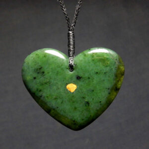 A Celtic knot carved from a delightful light green New Zealand jade with many contrasting black spots. Self collected stone from many years ago. Beautifully translucent jade.